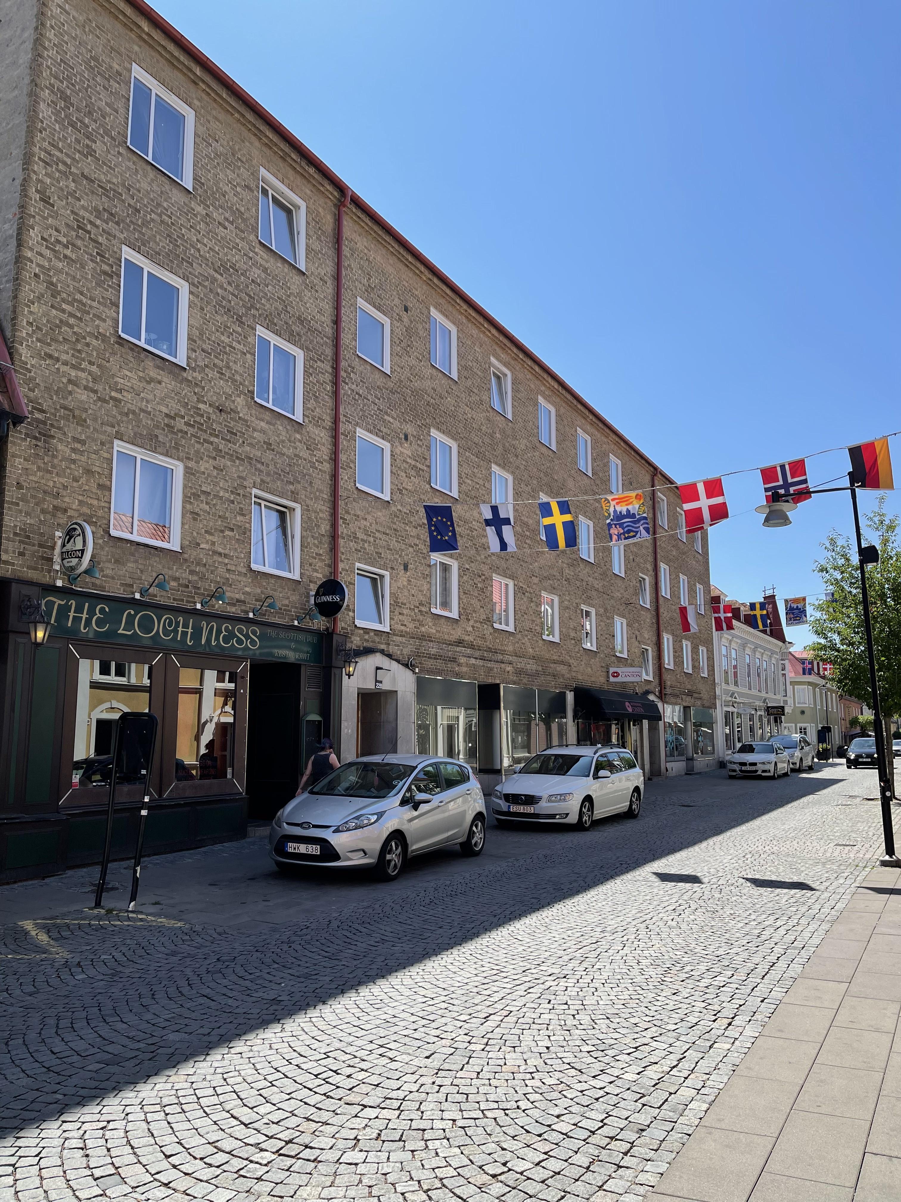 Karlshamn centrum. Lägenheter, butikslokaler och restauranger.